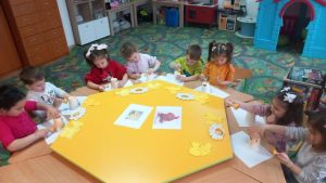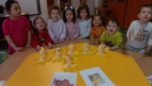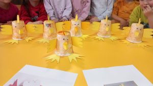 Cei mai mici au confecționat puișori din materiale reciclabile și s-au îndulcit cu un chec făcut acasă.