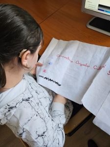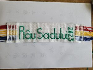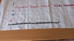 Ne-am reîntors în timp căutând semnele cusute specifice localității Râu Sadului, iar cu multă migdală, răbdare și mândrie le-am așezat pe semnele noastre de carte.