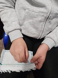 În cadrul acestui atelier am învățat să ne realizăm propriile semne de carte, față de masă și cum să facem ciucuri la o traversă.
